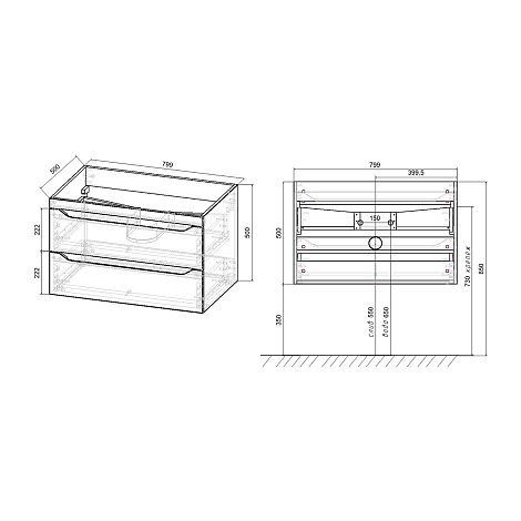 Система хранения: 2 выкатных ящика с доводчиками